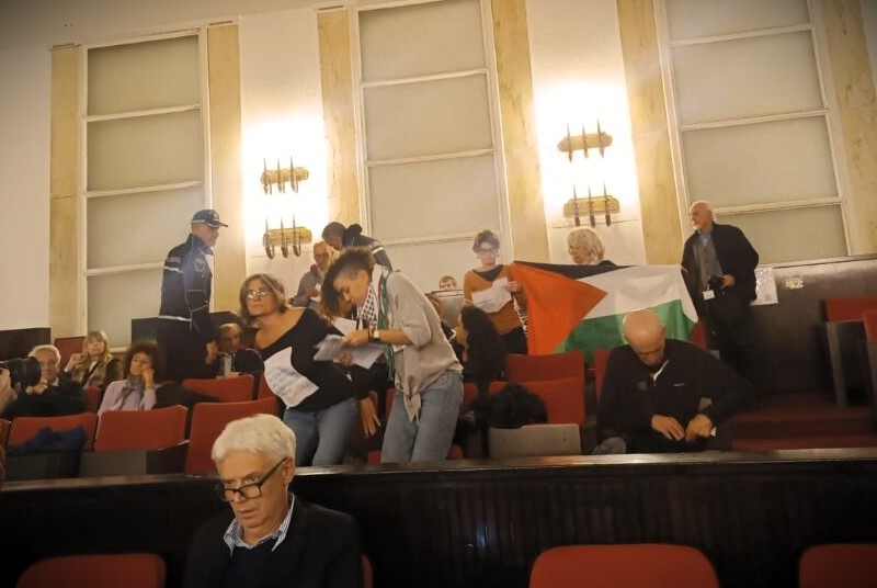 “236 morti dopo 21 giorni dalla tregua”, hanno detto dal pubblico, sostenendo bandiere della Palestina. Due settimane fa, era stato approvato un ordine del giorno che impegnava la giunta a interrompere rapporti istituzionali Israele, tra cui il gemellaggio con Tel Aviv, “nel caso di un significativo venir meno del rispetto degli impegni del piano di pace se le ostilità dovessero riprendere”.